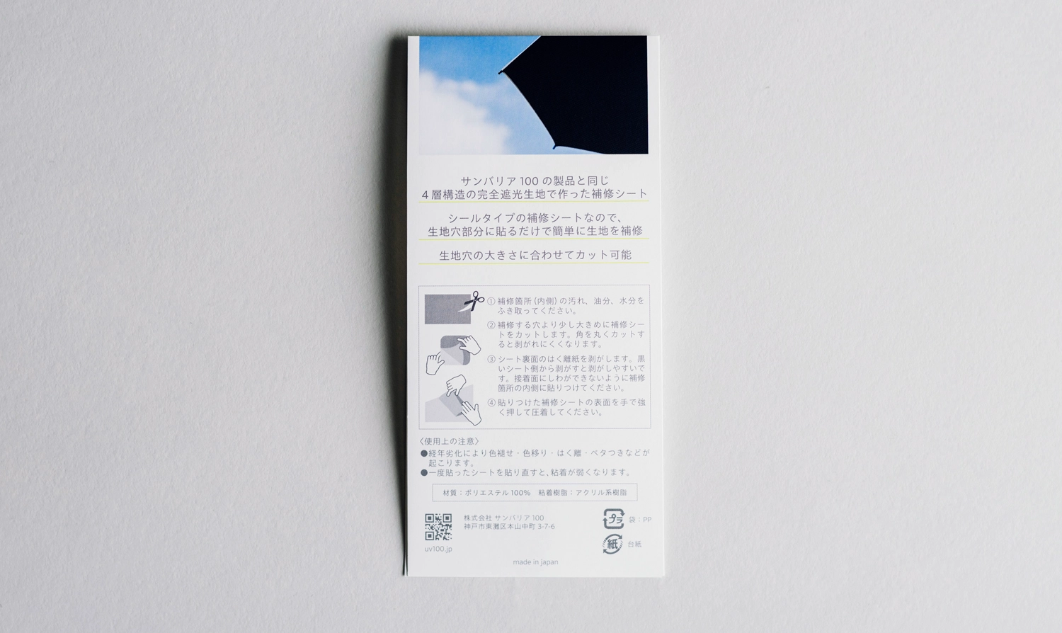 ※他社製の日傘にもご使用いただけますが、補修の仕上がりについては保証いたしかねます。あらかじめご了承ください。