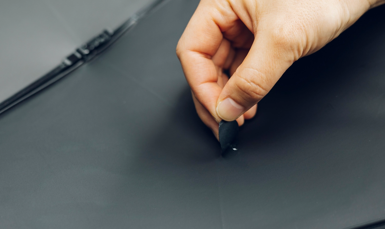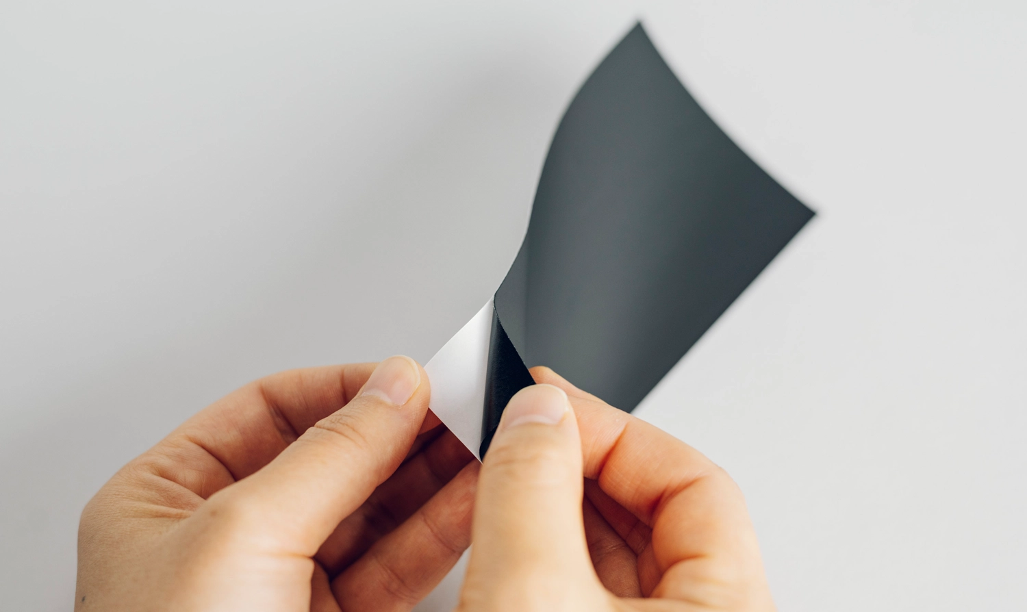 (3)シートの裏面のはく離紙を剥がします。黒いシート側から剥がすと剥がしやすいです。