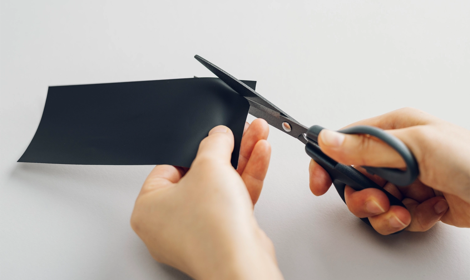 (2)補修する穴より少し大きめに補修シートをカットします。角を丸くカットすると剥がれにくくなります。