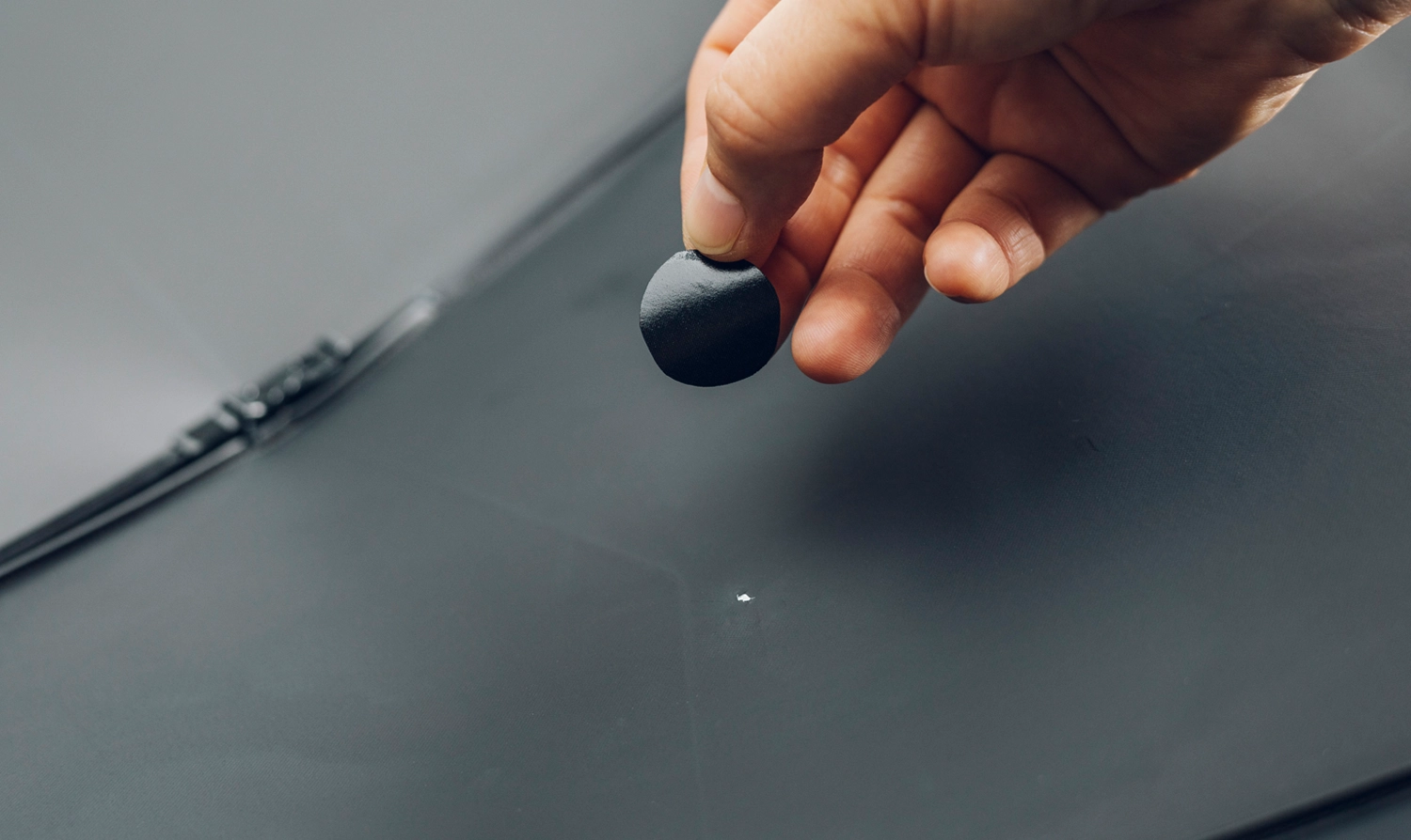シールタイプの補修シートなので、生地穴部分に貼るだけで簡単に生地を補修することができます。