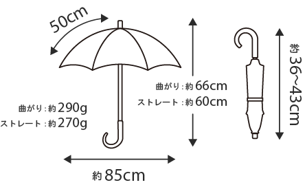 - ■傘全長:約66cm(木曲がり手元)、約60cm(木ストレート手元)