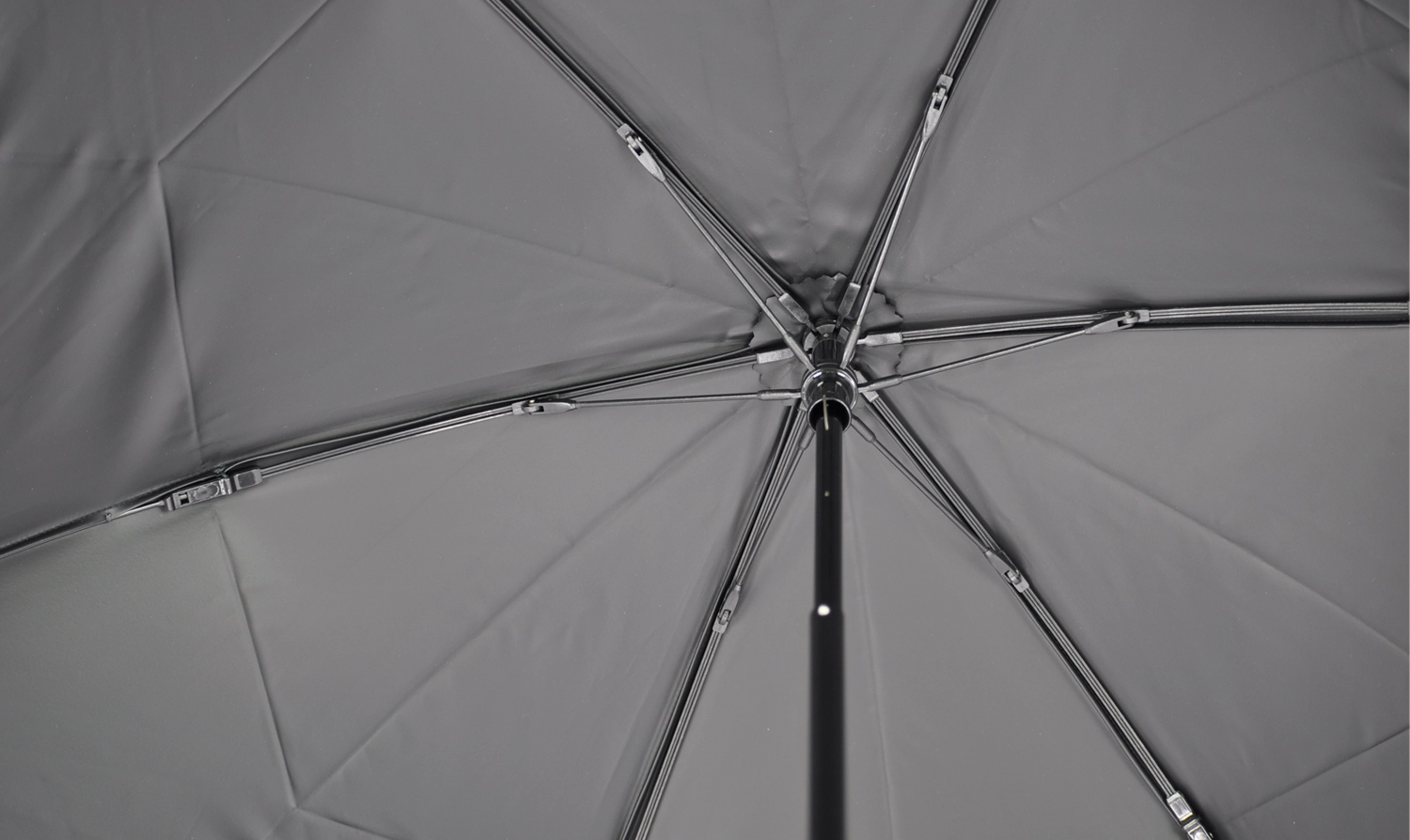 軽くてコンパクト、さらに畳んだ時にはスリムになるよう骨数を6本にしました。(2段折の骨数は8本です)骨数が6本でもきれいなシルエットを保てるように工夫しています。