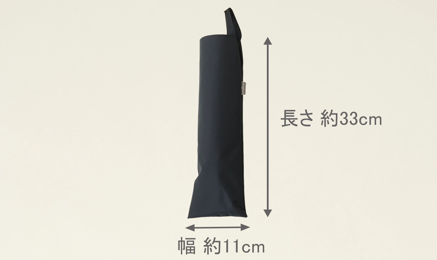 日傘袋の幅は約11cm、長さは約33cmです。折りたたんだ状態の2段折日傘がぴったり入る大きさです。