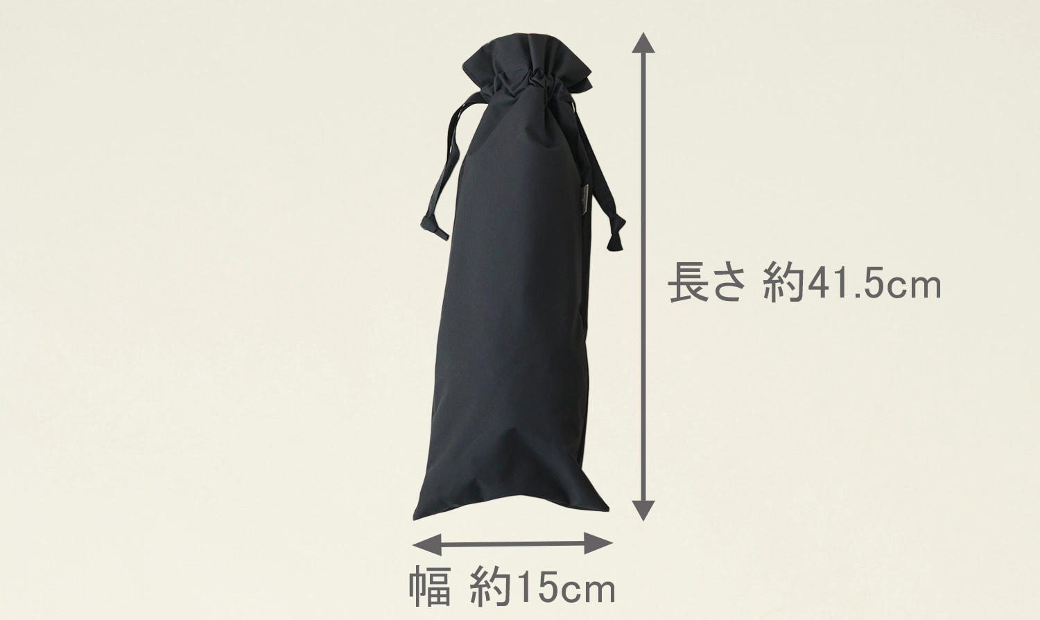日傘袋の幅は約15cm、長さは約41.5cmです。折りたたんだ状態の2段折フリルの日傘がぴったり入る大きさです。