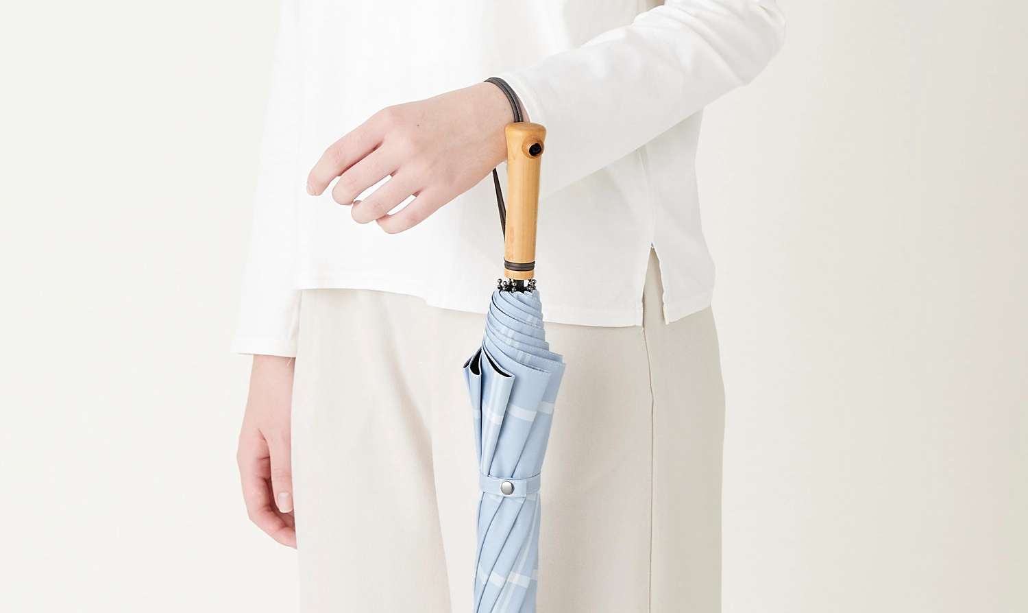 手元は天然木で高品質。サンバリアオリジナルデザインの持ちやすいストレート。