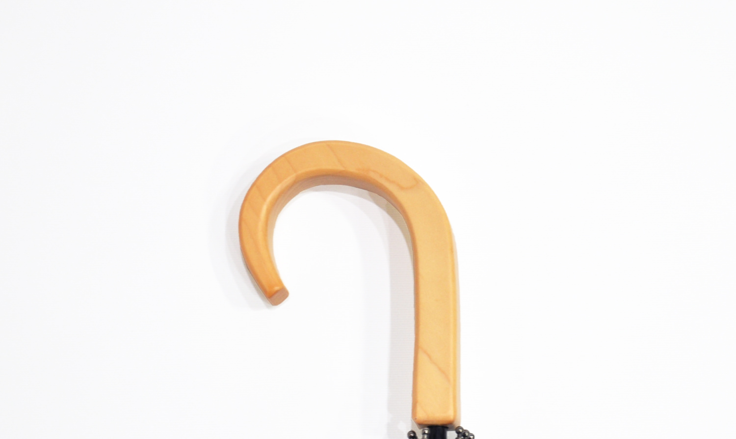 サンバリアオリジナルデザインの手元です。四角いきれいなシルエットのJ型で、腕にかけられる大きさです。