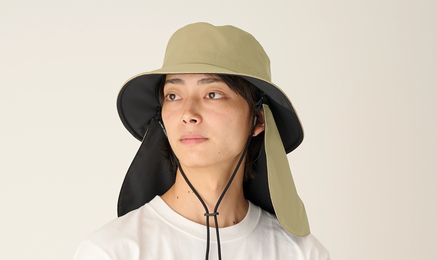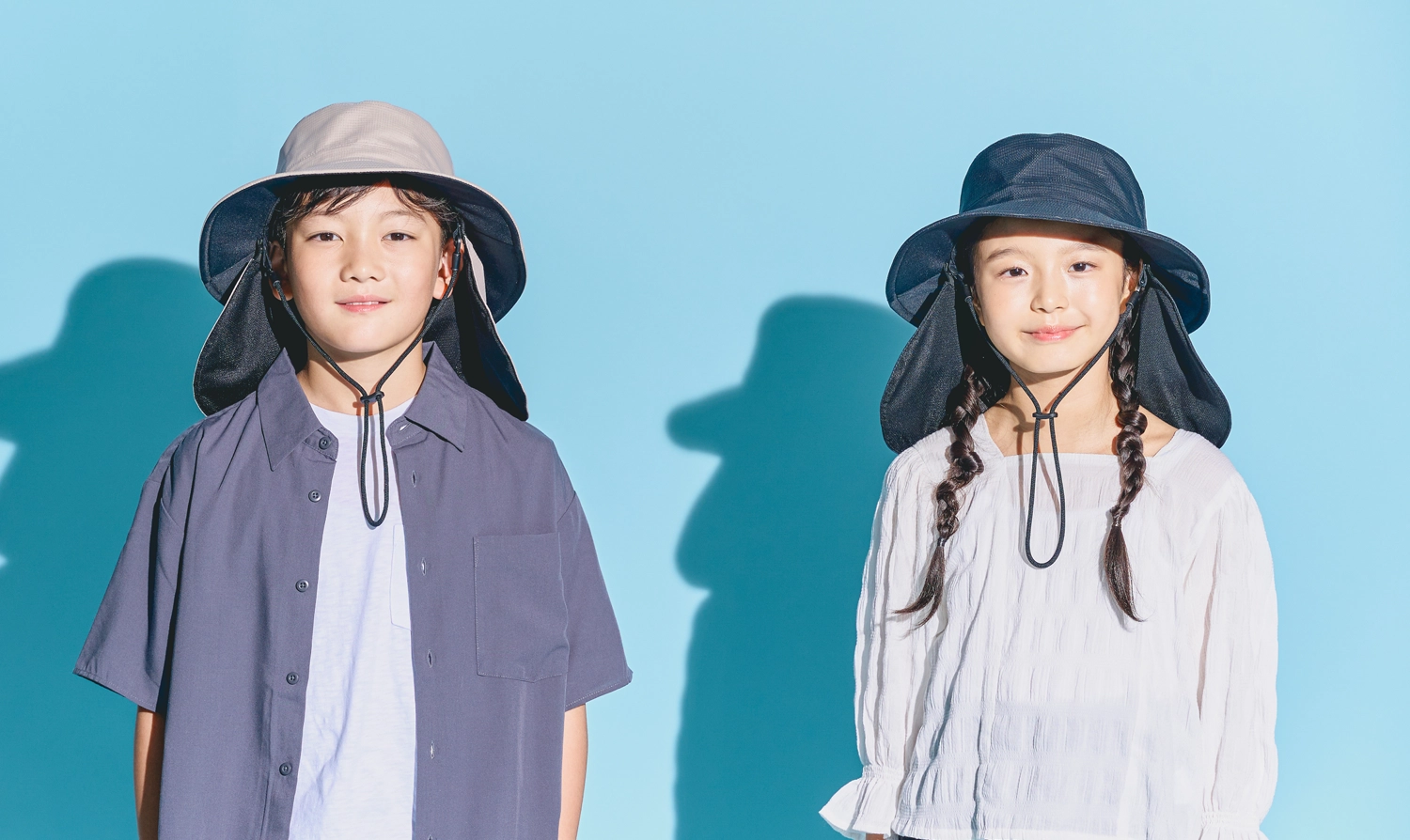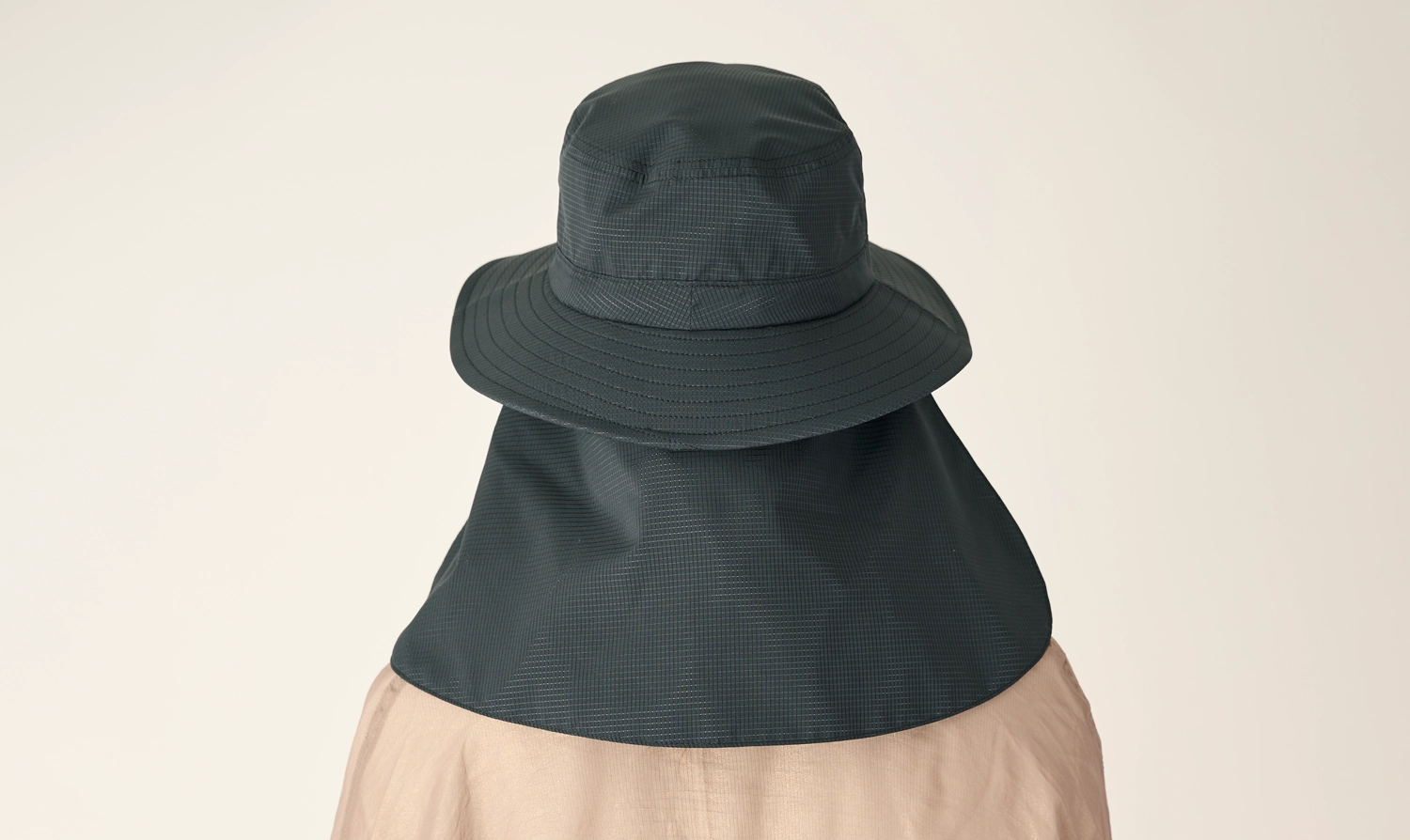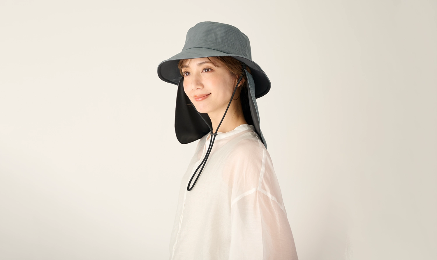 シェード部分は表生地とメッシュの間に完全遮光生地を挟み込んだ「3層構造」。完全遮光のシェードで首周りや耳元を日差しからしっかり守ることができます。