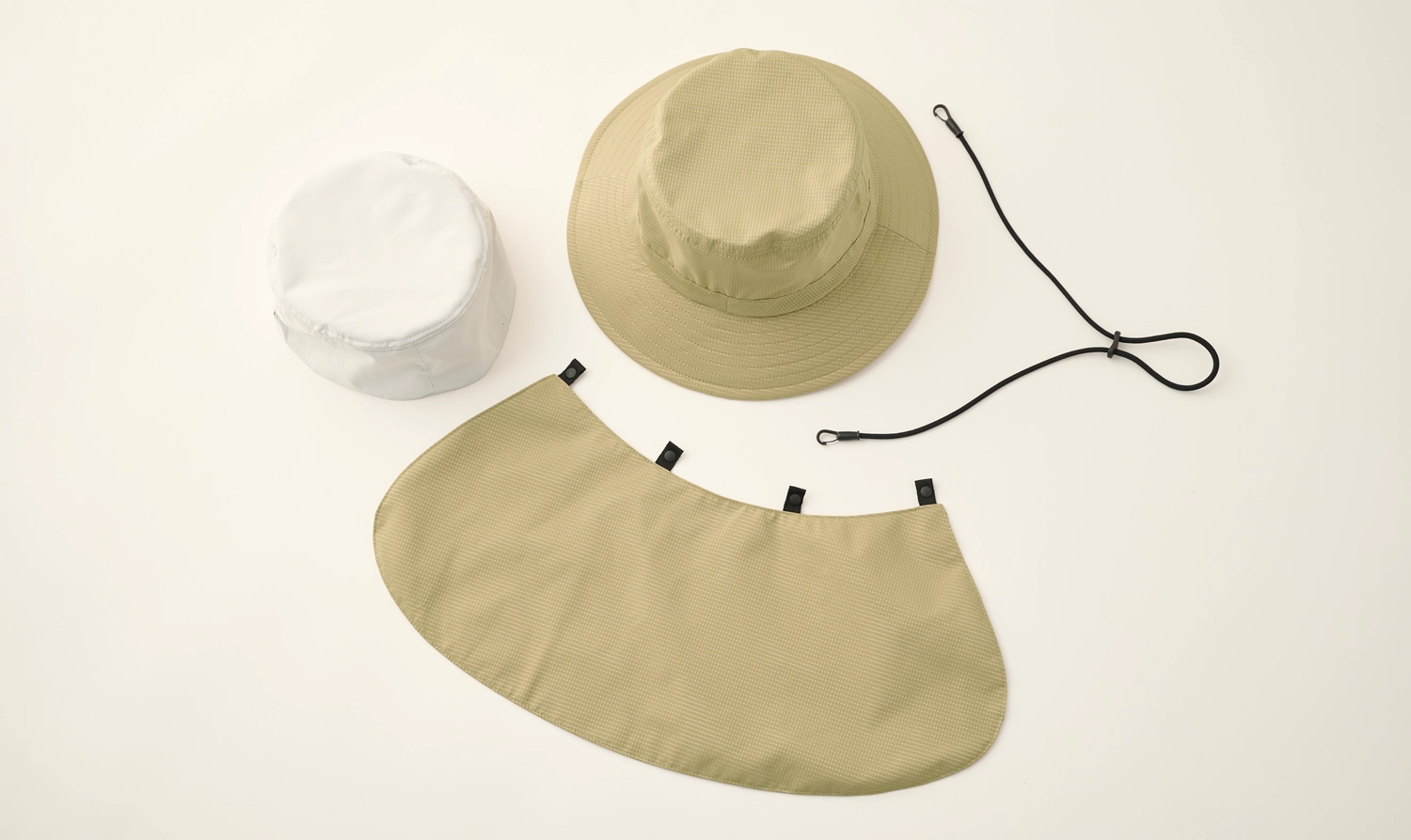 完全遮光インナー・シェード・ハットストラップは着脱できるので、自由に組み合わせて、シーンに応じた使い方ができます。